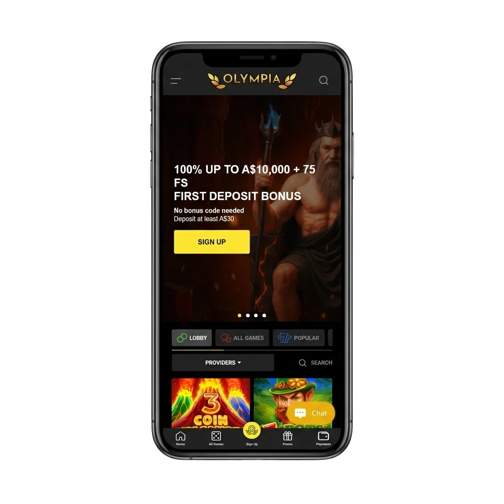 The Olympia app is available in multiple languages and supports legal real-money play for users in Australia. Whether you prefer sports betting or casino games, every feature is accessible through the app. Payments are supported via Apple Pay, Astropay, Bank Transfer, Binance Pay, Cashtocode, ecoPayz, Flexepin, Google Pay, Jeton, Mastercard, MiFinity, MuchBetter, Neteller, PayID, Rapid, SEPA, Skrill, Visa, and Volt.